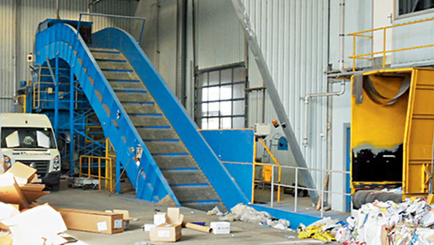 Perforátor PET lahví se instaluje do systému násypky kontinuálního lisu.